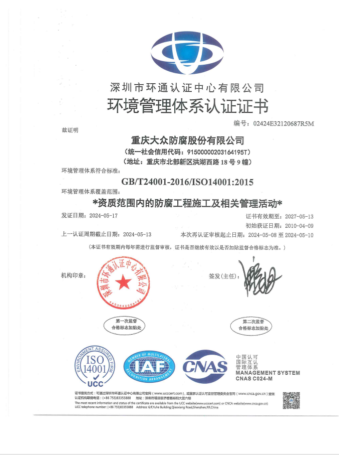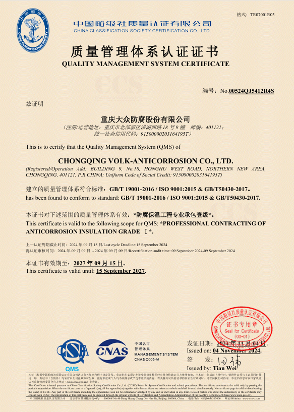 质量管理体系认证证书-防腐保温工程专业承包壹级